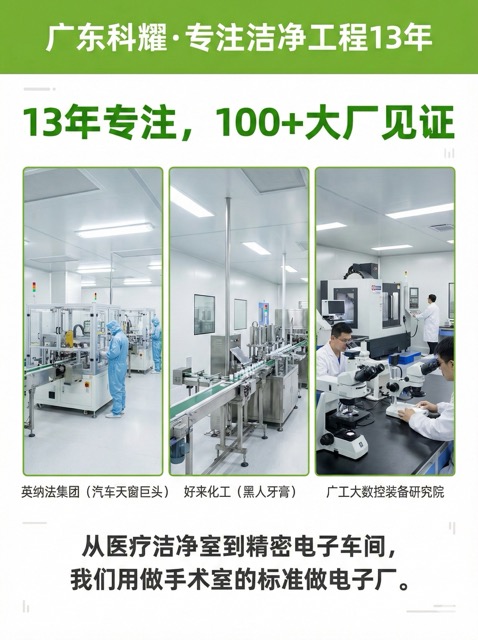13年来,广东科耀专注于洁净工程领域,服务了超过100家知名企业,积累了丰富的行业经验和成功案例。