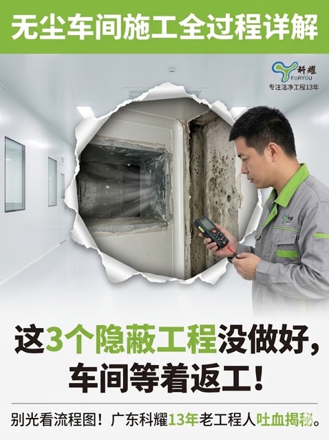Guangdong Keyao's 13-year veteran engineers reveal the 3 most overlooked hidden works in cleanroom construction — duct insulation, panel joint sealing, and epoxy floor moisture barriers.