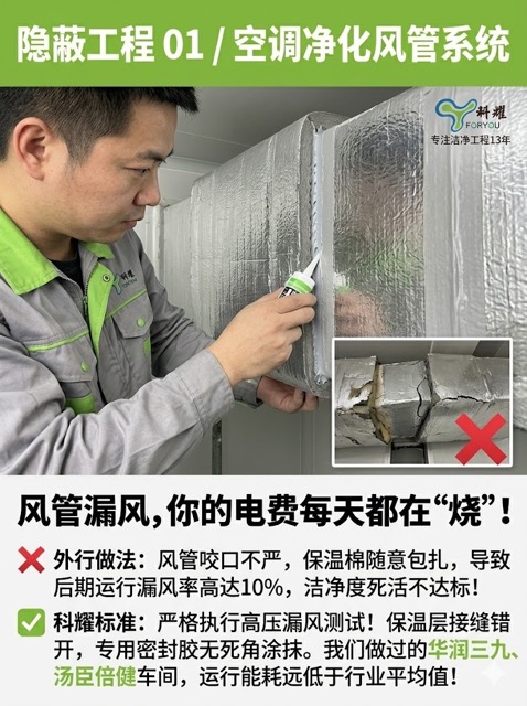Leaky ducts mean your electricity bill is burning money every single day. The HVAC duct system is the lifeline of a cleanroom — insulation and sealing quality directly determines energy consumption and whether cleanliness standards can be met.